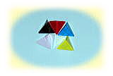 | Q ツボに貼る色片とは? 色紙を切って作った小さな形が色片。筋診断で使う色片は一辺6ミリの正三角形。色は青赤黄白黒ピンクの6色。 そもそも色とは何でしょう。色彩のこと?でも色欲のこともいいますよね。仏教では物質の意味で用います。中医学では森羅万象を色といい、この世界に存在するものは、すべて色体でできています。あらゆるものには色がついているからです。例外は水と空気で、色を持たず透き通っています。 色体を純化したものが色で、色の中の色は白黒と三原色の赤青黄。筋診断ではそれに、色以前の色であるピンクを加えた6色を駆使して経絡にアクセスします。そのもっともシンプルな安定形が正四面体。正四面体の次元を一つ落とした形が正三角形。くりかえすと、色片とはこの6色の、一辺6ミリの三角片のことです。 色体と経絡には密接な関係があり、筋診断はそれを巧妙に用います。 |