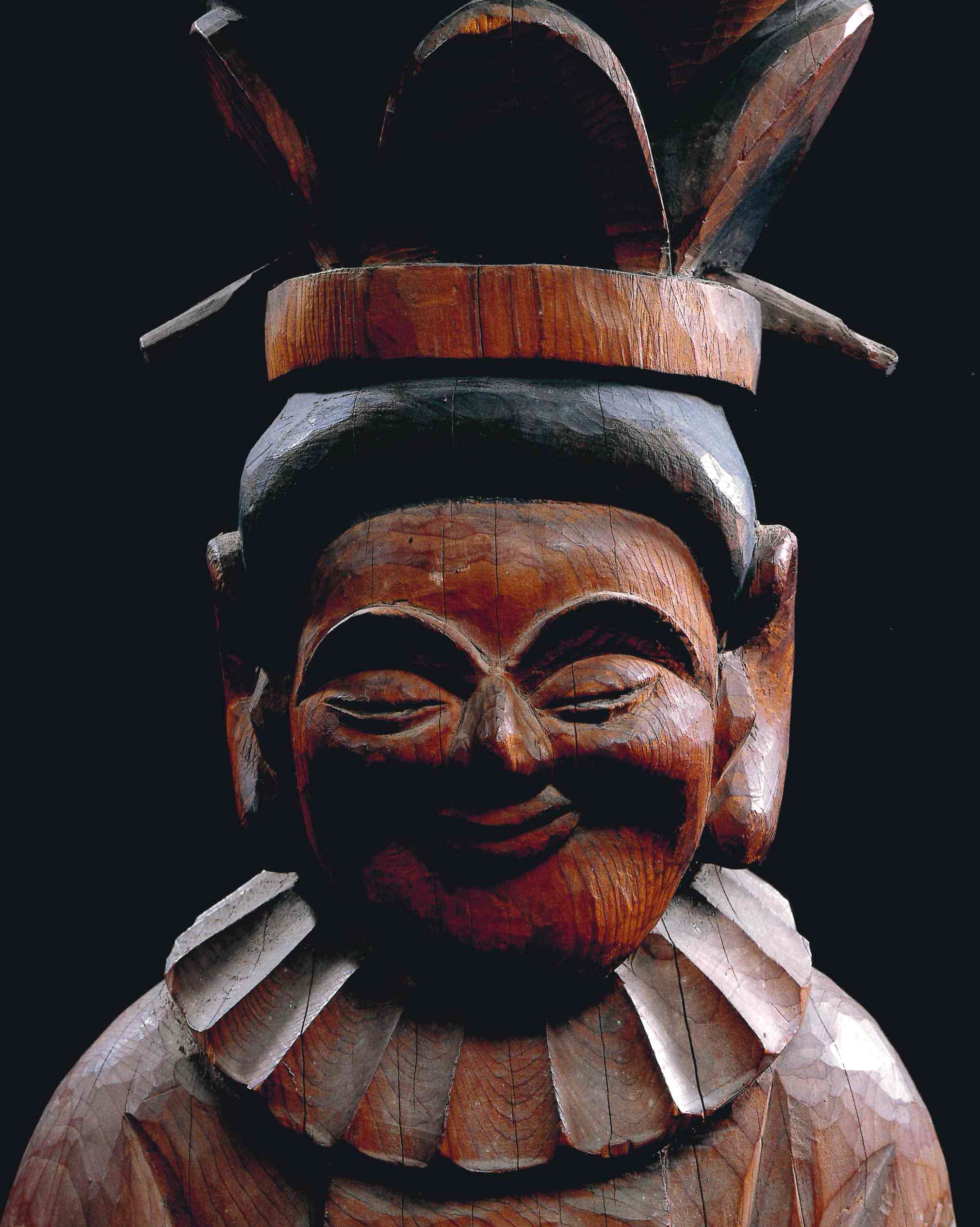 微笑息 3月発行の『身体知』を編集していて、2~3ページほど余白ができそうでしたので、調息のことを考えているところだったこともあり、微笑息のことでも書いてみようと気軽に書き始めたのでしたが、この「研究」対象は、奥が深かった。それというのも、木喰上人の人徳に触れたせいでした。 笑いが健康によいということは、よく知られております。よい理由はそのへんの生理学者が脳内生化学物質が○○神経を刺激して…などと、うだうだ言っておりますが、本質的なことではありません。 本質的なことは笑うという生理現象が呼気を長くして胸郭を引き締め、その直後の吸気を一気に拡大して胸郭を広げる作用を持つため、一義的に肺が酸素を多く心臓に送り出すということでしょう。 一方、心経の陰気が口腔側面から噴き出して小腸経の陽気に転じる際に、笑うことによって引き起こされる笑筋の収縮作用によって上顎骨下辺に形成される小腸経のルートが大きく開かれ、小腸経が一気に活性化します。すなわち心拍を強く速くさせるのですが、この肺と心拍の相互作用こそが、身体全域手足の末端まで新しい血を送り込んで体温を上げ、ミトコンドリアの活性化を促して代謝を早め、静脈血の免疫力を高めるために、健康によい、元気になるというわけなのです。 笑うと健康でいられる…ということは分かっていても、笑う材料に乏しい生活を強いられている現代日本人は、なかなか心の底から笑うということができません。どうですか。あなたは、今日、お腹の皮がよじれるほど笑いましたか。昨日は? 先週は? 今月に入ってからは? いえ、今年に入ってからだって、苦しくなるほどの大笑いを笑ってはいないのではありませんか。 日本人には、アメノウヅメの昔から結構笑ってきた歴史があり、狂言や落語など庶民の笑いの文化を育んではきたのですが、その反面、厳しい現実を生きなければなりませんでした。いつもいつも朗らかな国民ではなかったのです。今もそうであるように。 木喰上人が生きたのは1718年から1810年までということになっておりますが、木食戒を授かったのが45歳、仏像を彫りはじめたのが61歳ということになっております。 その年は天明の大飢饉のさなかで1783年から5年連続の飢饉でした。東北を中心に10万人が飢えて死んだということです。木喰さんは当時の地の果て蝦夷地の太田権現で約70年前にここに来て彫った円空の微笑仏を見て、ああオレでも彫れる、彫らなあかんと一念発起するんですね。 それから木喰さんの遊行が始まる。飢饉で疲弊した村を歩くんです。 木喰さんはぼろをまとった六尺の坊主で、五穀を断ってソバガキみたいなものと木の実しか食べずに、頼まれては彫って彫って彫りまくる。 彫りはじめてから客死するまでの30年間に約千体も彫る。単純計算で十日で一体の割です。はじめのころの作品は渋いお顔の仏像ですが、だんだん例の丸くまんまるのにこにこ顔になってきます。 どうしてだと思いますか。 木喰さんが訪ね歩いた村々の農民たちは疲弊していて笑顔を忘れていたにちがいないのです。貧しくて、幼子を亡くしたり、病魔に冒されている肉親を抱えていたりしてね。木喰さんの修行はそういう貧民に顔施で報いるということだったんでしょう。〈この仏さんのごと笑ってみなさい。な、笑い飛ばせば何とかなるんじゃ〉とか言って手渡したのですね。小さな仏像を。 立派なお寺の国宝級の仏師が彫った仏像とは、違うんです。 木喰さんは笑いの見本を仏像に託して、日本国中を励まし歩いたということじゃないでしょうか。 さて、木喰さんの彫った仏像は微笑仏(みしょうぶつ)と呼ばれております。 微笑は、英語ではsmileといいますが、欧米人のスマイルでは歯を見せて笑っております。日本人の微笑では歯を見せません。木喰仏の中には歯を剥き出しにして笑っているものもありますが、多くはにこにこ顔ですが歯を見せておりません。世界三大微笑の一つ「モナリザ」(ジョコンダ)も歯を見せておりません。今日の欧米人が歯を見せるスマイルは、外面、外見の美を意識し、させる近代の意識の反映で、それ以前の微笑は洋の東西を問わず内面からの表出としての生理現象そのものであったと言えるでしょう。 木喰仏の微笑について『身体知』に書いた時には気付かなかったことがあります。 それは上唇の上の人中(鼻の下)に「溜め」があるということです。 この人中の下は切歯骨です。人間では左右の上顎骨と癒合して一体になっていますが、他の哺乳類では別々の骨です。要するに切歯骨が下顎骨とワンセットになっております。内胚葉系のホネなんです。さらに言えば、肺-大腸経の所属です。そういう骨の表層の上唇~人中を薄くして両端を絞った表情。これはいわゆるアヒルぐちという、少女のおどけ仕種における口元ですが、こういう表情をすることで切歯骨の両端に響く。そこで、つまり迎香という小鼻の脇のツボが刺激されて呼吸器が