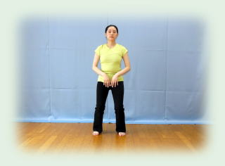 こんどは、外からかき寄せるように手を腹の前まで引き寄せてきて静かに止まる。手と手の間は約40センチ。 この手と手の間に、透明な目に見えない気のボールがあるかのようにイメージする。 つまり、気功のいくぶんかは「その気になって遊ぶ《ままごと》」なのです。 ヘンな人は手と手の間に手を差し入れて「あ、ホントだ。ちゃんとボールがあるよ」などと言う。あるわけねえだろ。でも、そう言い切らずあるかのように思うと(ままごとをしている時のように)たのしい。 この姿勢を《抱球勢》といいます。1分間以上このまま。もちろん、リラックスを心がける。気持ちはにこにこ。 |