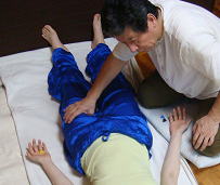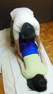 | ●おことわり 施術は、職能的な技法なので、言葉では表現できないところがあります。そこをあえて説明しようとすると、専門的になりすぎたり、細部に拘泥するような愚を冒しがちです。 ここでは、物語風に「治療の現場」をレポートする形で、筋診断の実際を観ていこうと思います。 レポーターは仮名みどり(24歳)。施術は会長(70歳)。患者は仮名誠子(40歳)…ということで。 |