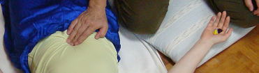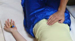 | 11. | 次いで、誠子さんの左手に、色体を持たせて、またおなかを押す。 右手に持った時と、左手に持った時では、痛みが違うはず。 誠子さんは、右手に持った時、痛くなくなる、ラクになるけど、左に持ったら痛くなる。左はダメと教えてくれる。教えてくれなくたって、おなかの硬直が消えて、指先に感じられたつかえ、かたまり感がなくなってしまうのだから、右側が第一治療経のある側だということが判る。 これを「異常緊張解消反応」というそうです。 |