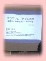 当日のプログラムは… 午前中に3つの分科会 昼休みに1つの居残り特別講座 午後から藤野武彦先生をお招きして記念講演 『プラズマローゲンの医学/脳疲労・認知症・気の改善』 |